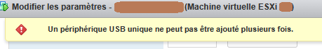 … vSphere vous indiquera : « Un périphérique USB unique ne peut pas être ajouté plusieurs fois »