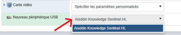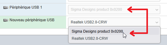 7/ Une nouvelle ligne s’est ajoutée : il ne reste plus qu’à sélectionner le périph USB souhaité dans la liste déroulante.