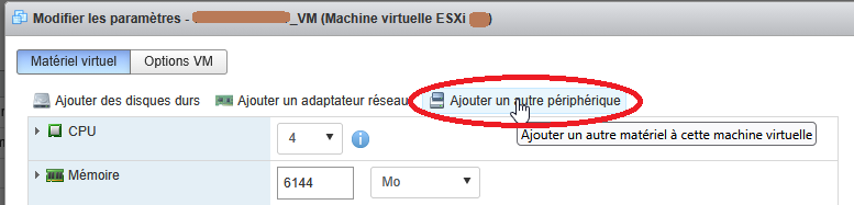Pour ajouter un périphérique USB dans une machine virtuelle d’un ESXi 6.7 (valable depuis la 5.5 au moins), c’est très facile :