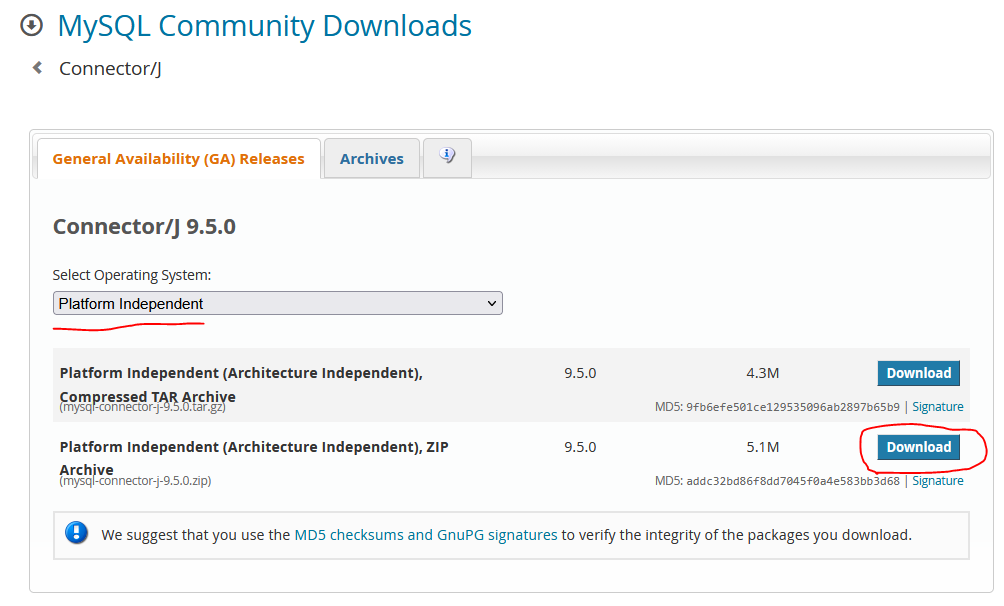 Dans la liste déroulante, on sélectionne « Platform Independent » puis on télécharge le zip :