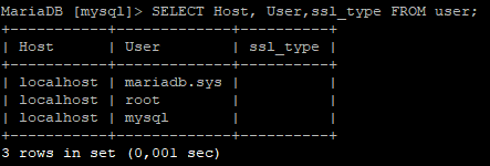 Dans la base qui me sert d’exemple pour ce tuto, il n’y a que les utilisateurs par défaut et ils sont tous filtrés sur « localhost » :
