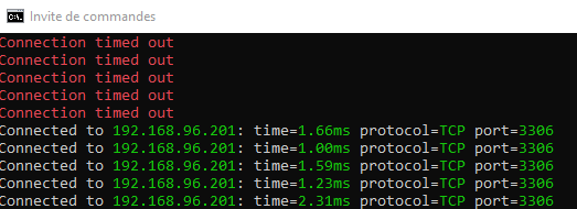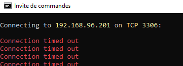 A/ Vous n’avez pas ouvert le port d’écoute de la BDD depuis l’extérieur