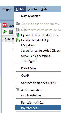3/ On ouvre SQL Dev et on va dans « Outils » – « Préférences » :