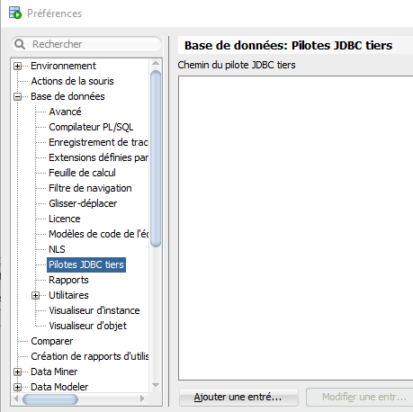 On va dans la rubrique « Base de données » puis « Pilotes JDBC tiers » et on clique sur « Ajouter une entré… »