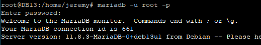 Pour le point B/, si vous n’avez pas autorisé votre utilisateur / identifiant à se connecter depuis autre chose que le localhost (127.0.0.1) de MariaDB : on se connecte à la base de donnée en console :